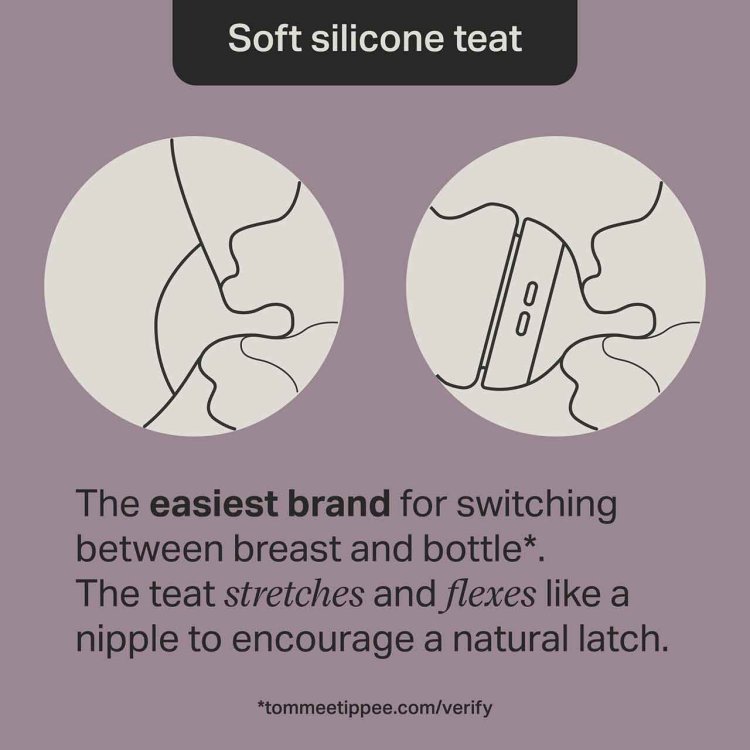 🤱 Soft silicone teat shaped for a natural latch