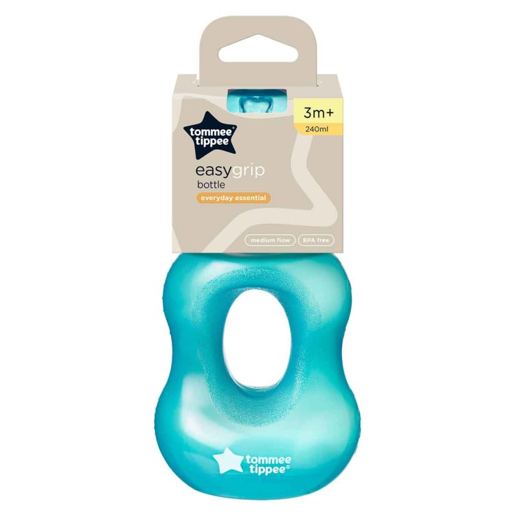 Tommee Tippee Everyday Essential Easy Grip Baby Bottle – 240ml, 3m+, Pack of 1 | Soft Silicone Medium Flow Teat | Designed for Tiny Hands | Colours Vary