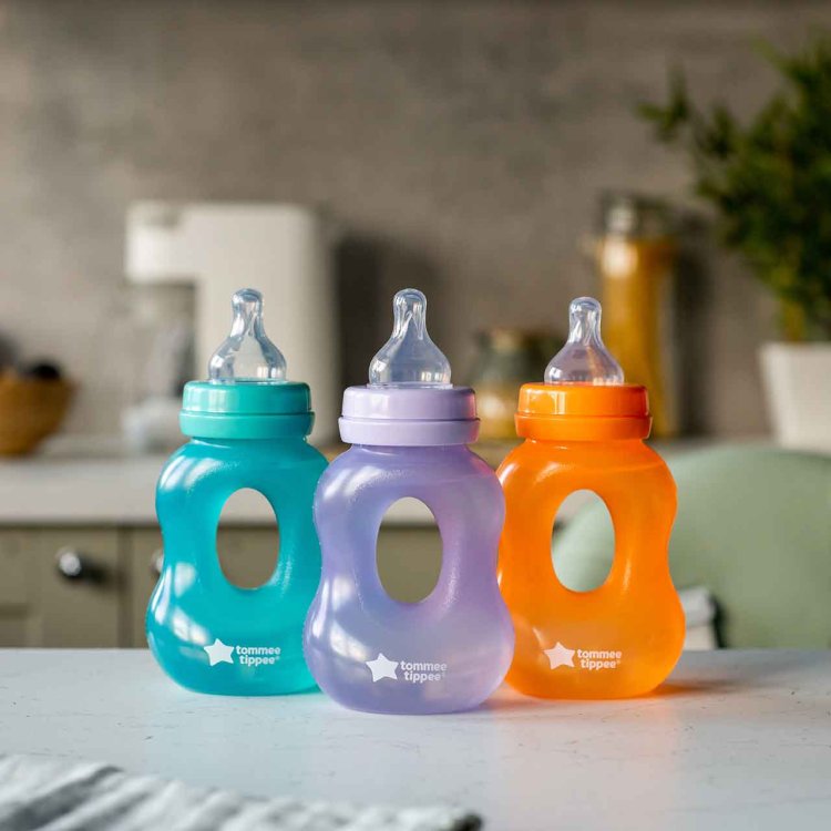 Perfectly crafted for little hands, Tommee Tippee’s Everyday Essential Easy Grip Baby Bottle makes feeding comfortable and easy. Available in three fun and vibrant colours, this bottle features a soft silicone teat that’s gentle on delicate mouths and gums, with a medium flow ideal for babies aged 3 months and up.