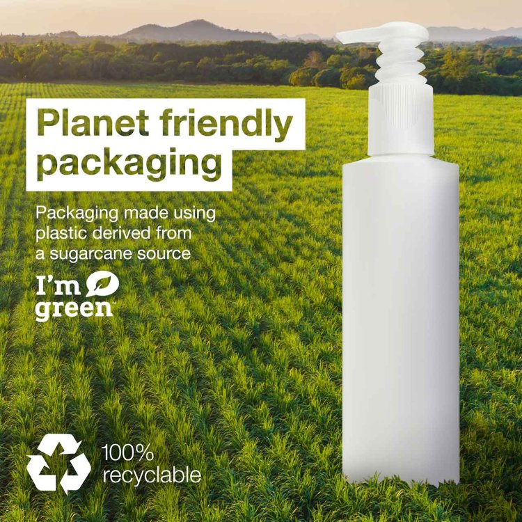 Manufactured from carbon-negative, plant-based packaging