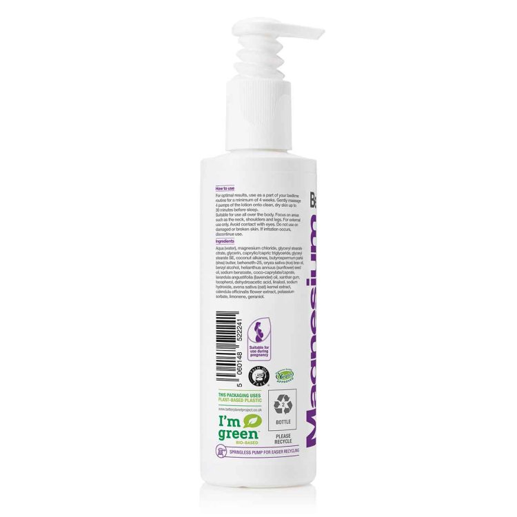 An essential part of any bedtime routine, Magnesium Sleep Body Lotion combines Zechstein magnesium chloride and essential oils lavender and chamomile, to promote a relaxing effect on the body when massaged into the skin.
