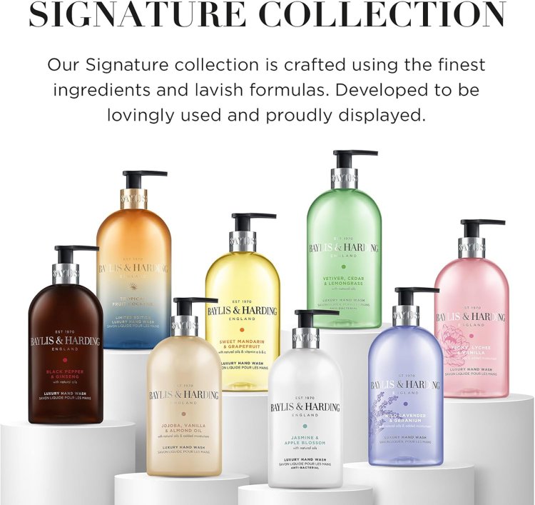 Part of the Baylis & Harding Signature Collection, this luxurious hand wash gently cleanses while leaving hands soft, moisturised, and delicately fragranced. Beautifully presented in a recyclable bottle, itβs a timeless addition to any sink.