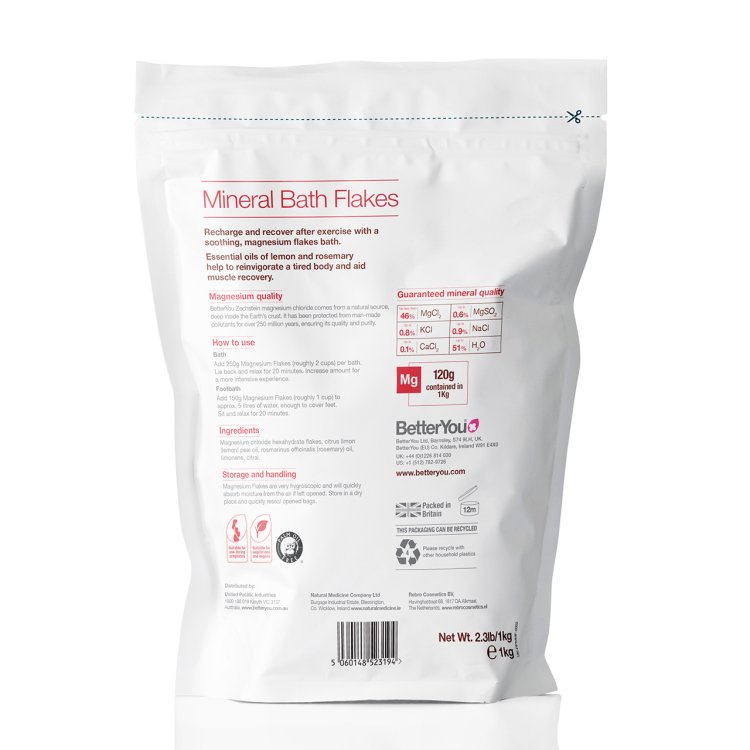 BetterYou Magnesium Flakes are a unique combination of 100% pure-source sub-terranean and marine magnesium chloride. Naturally evaporated, purified and condensed for optimal absorption.