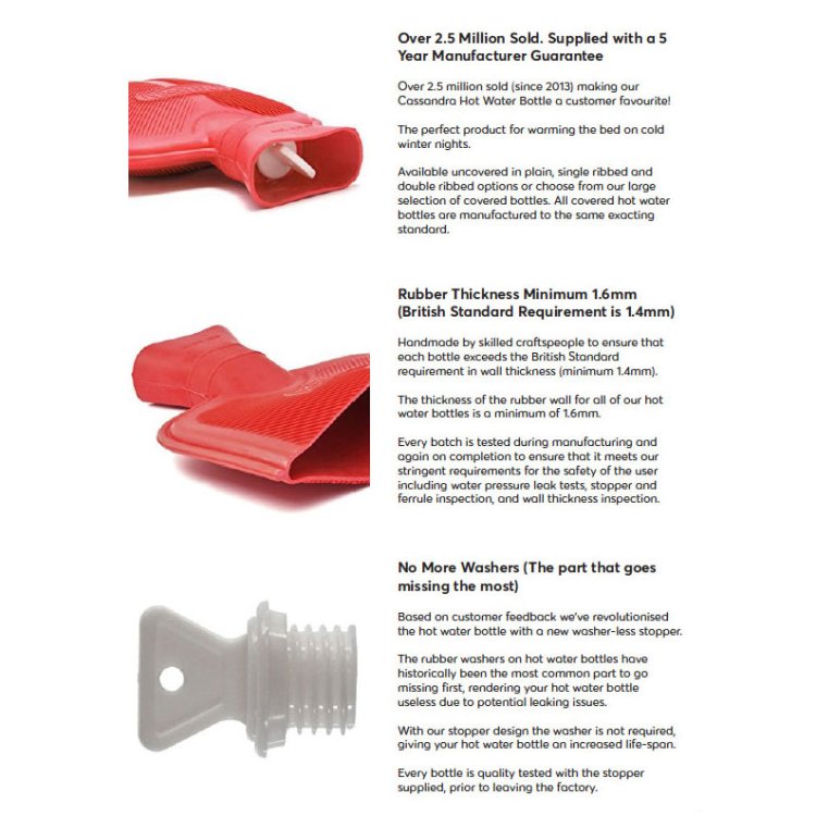 High quality hot water bottle manufactured to the highest standards. Helps to ease aches and pains.