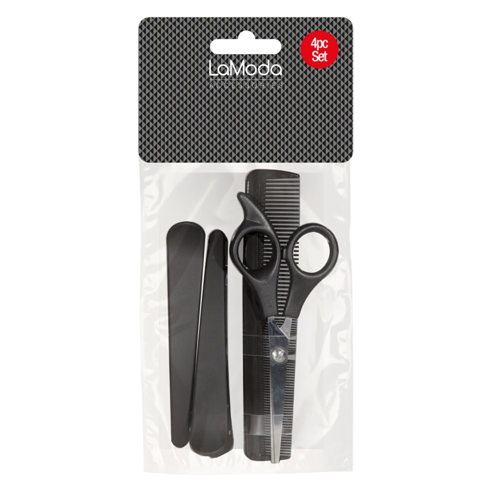 Equip yourself with the LaModa Essentials Hairdressing Kit for professional-level styling at home. This comprehensive kit includes high-quality scissors, combs, and clips, providing everything you need for precise haircuts and styling. Perfect for both beginners and experienced hairdressers.
