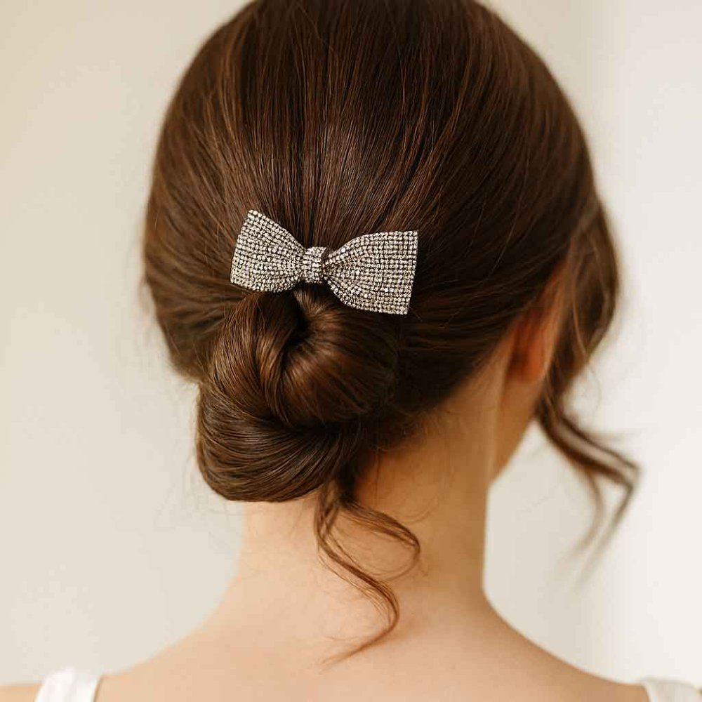 Combine style and functionality with the Rhinestone Bow Scrunchie. Featuring a soft, fabric scrunchie adorned with a rhinestone-studded bow, this accessory adds a glamorous twist to any ponytail or updo. A perfect blend of comfort and sparkle for any occasion.