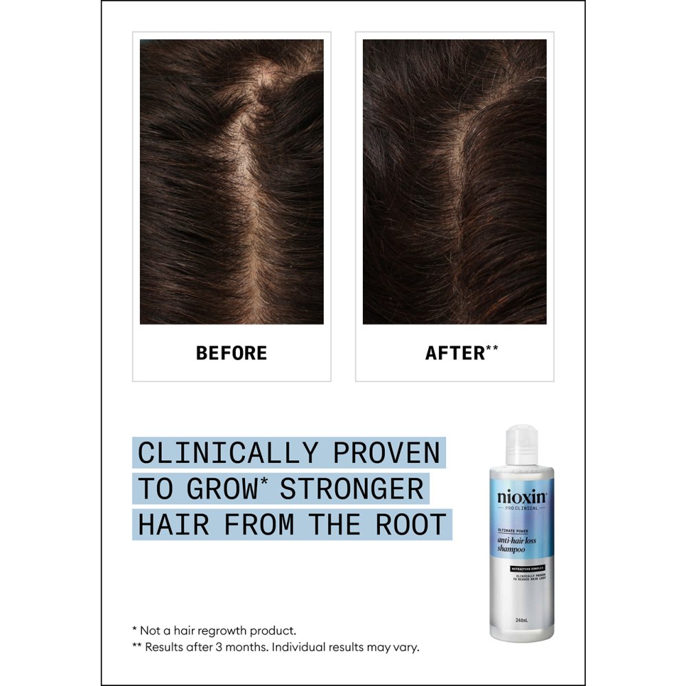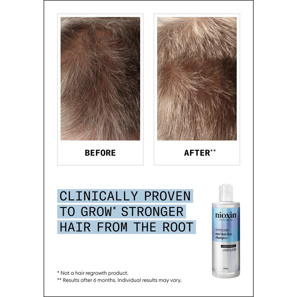 Nioxin Anti-Hair Loss Shampoo removes build-up and grows¹ stronger hair from the root for visibly less hair loss in 12 weeks².