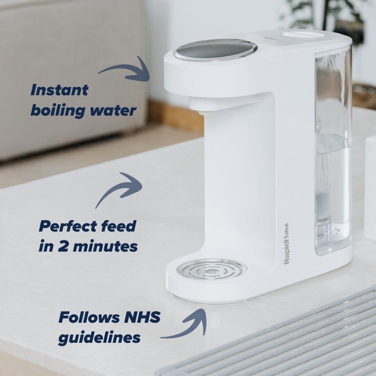 Say goodbye to kettle-watching and hello to RapidHot by Nuby — the ultimate baby bottle preparation machine designed to save time and stress. At the touch of a button, RapidHot delivers instant, filtered, boiling water, making feed preparation quicker, safer, and simpler.