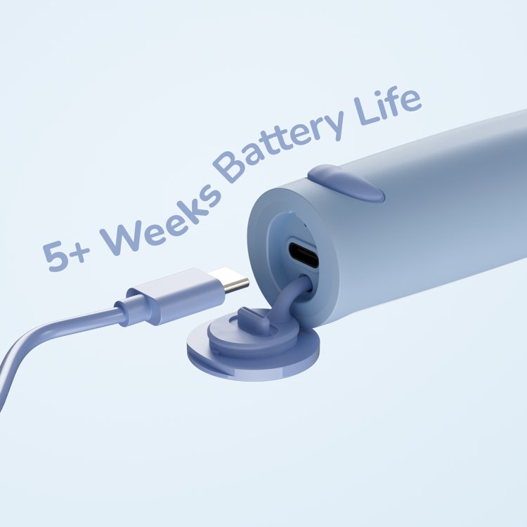 • Round brush head: Perfect for smaller mouths, as a delicate way to build a healthy brushing routine.