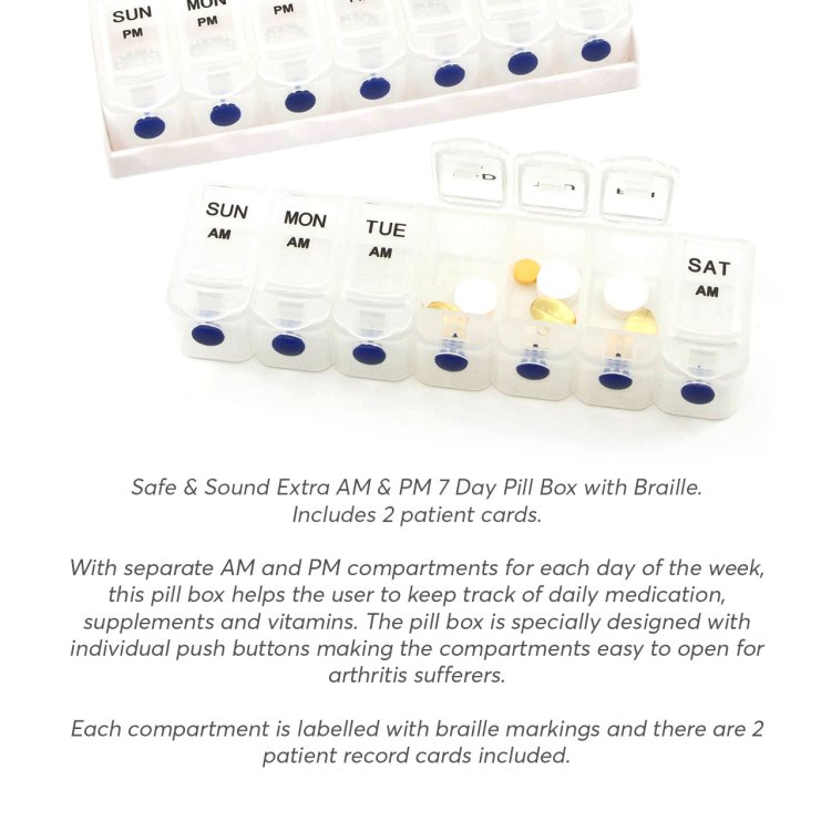 Safe and Sound Extra A.M. & P.M. 7-Day Pill Box with Braille