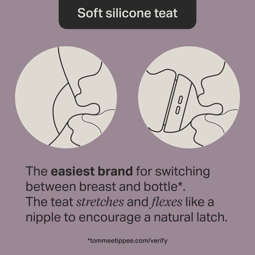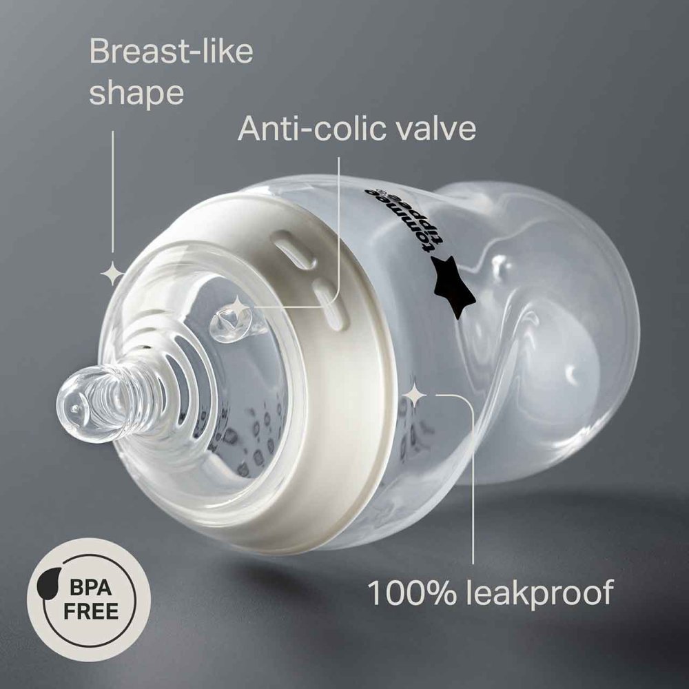 Make feeding smooth and natural with Tommee Tippee’s Natural Start Bottles, designed with soft silicone teats shaped like a breast to encourage a natural latch and prevent nipple confusion. The built-in anti-colic valve helps reduce air ingestion, supporting calm, comfortable feeding at your baby’s own pace.
