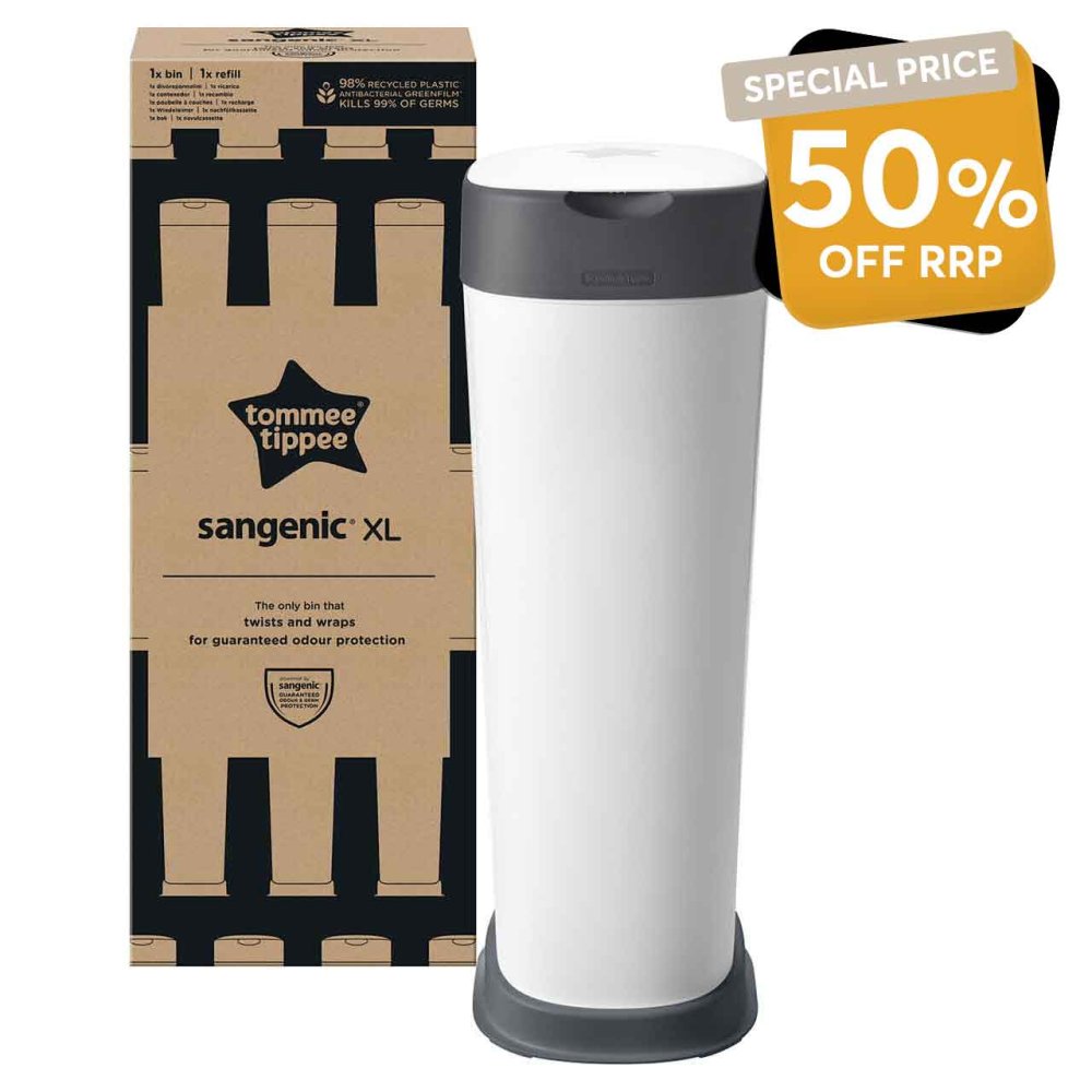 Take control of nappy changes with the Twist & Click XL — Europe’s No.1 nappy disposal system**, now bigger and better. Designed to individually wrap each nappy in anti-bacterial film, it locks in odours and kills 99% of germs*, keeping your home fresh and your hands clean.