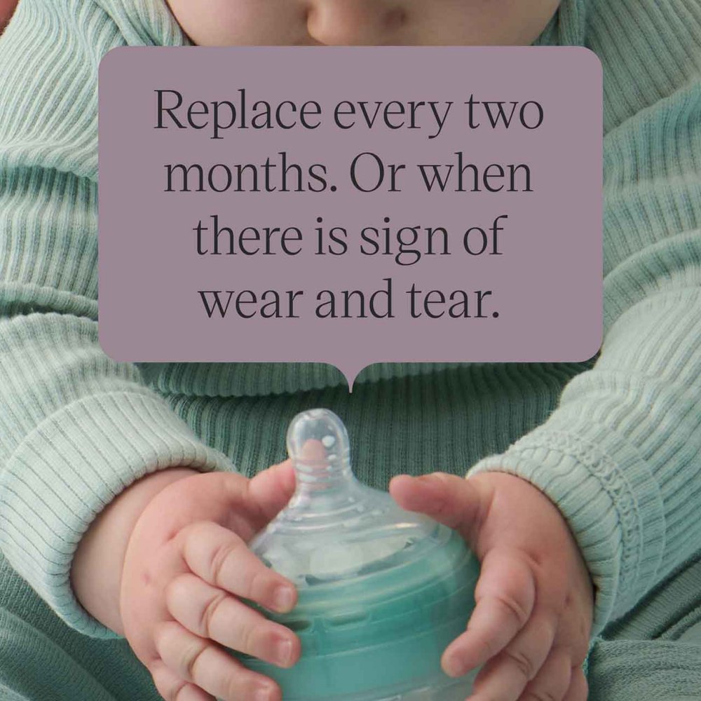 We recommend changing your bottle teats every two months and you should change them immediately if they're damaged or weak.
