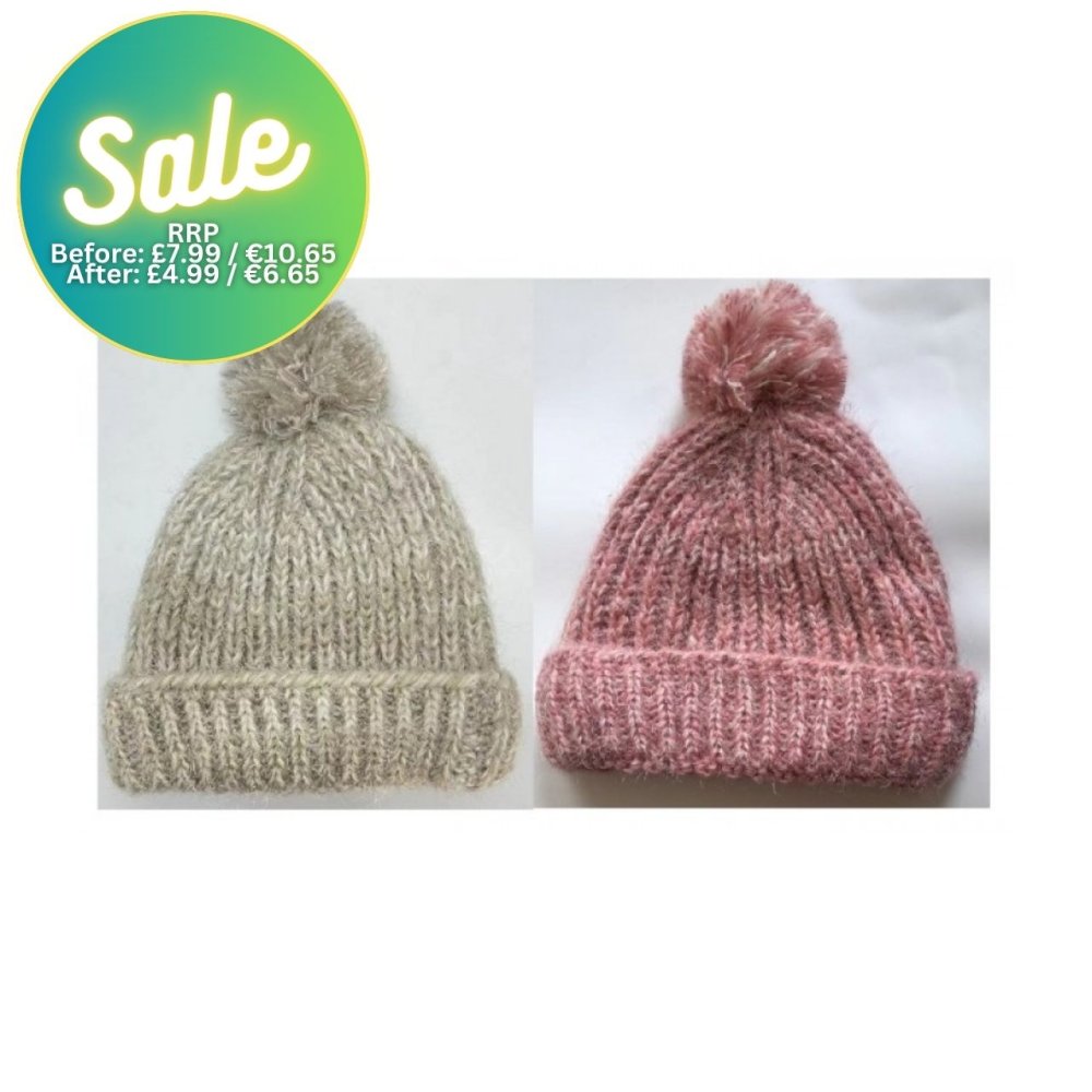 Ladies Mohair Cable Hat with fleece lining & pompom
