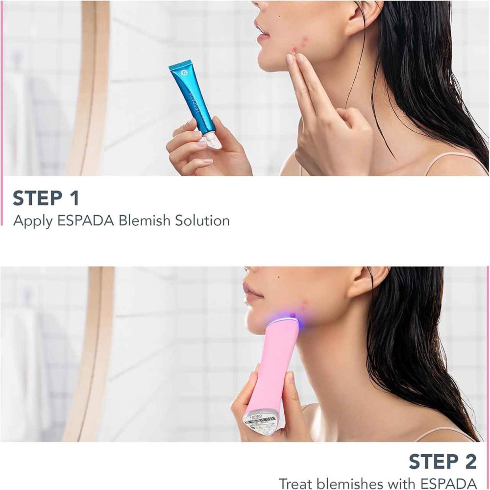 Get clear, smooth & healthy skin with ESPADA™ 2 plus - specifically designed to clear recurring acne by treating each individual spot with ultimate precision. Working quickly and effectively, ESPADA™ 2 plus also prevents future breakouts, while healing acne marks and blemishes, and minimizing pores.