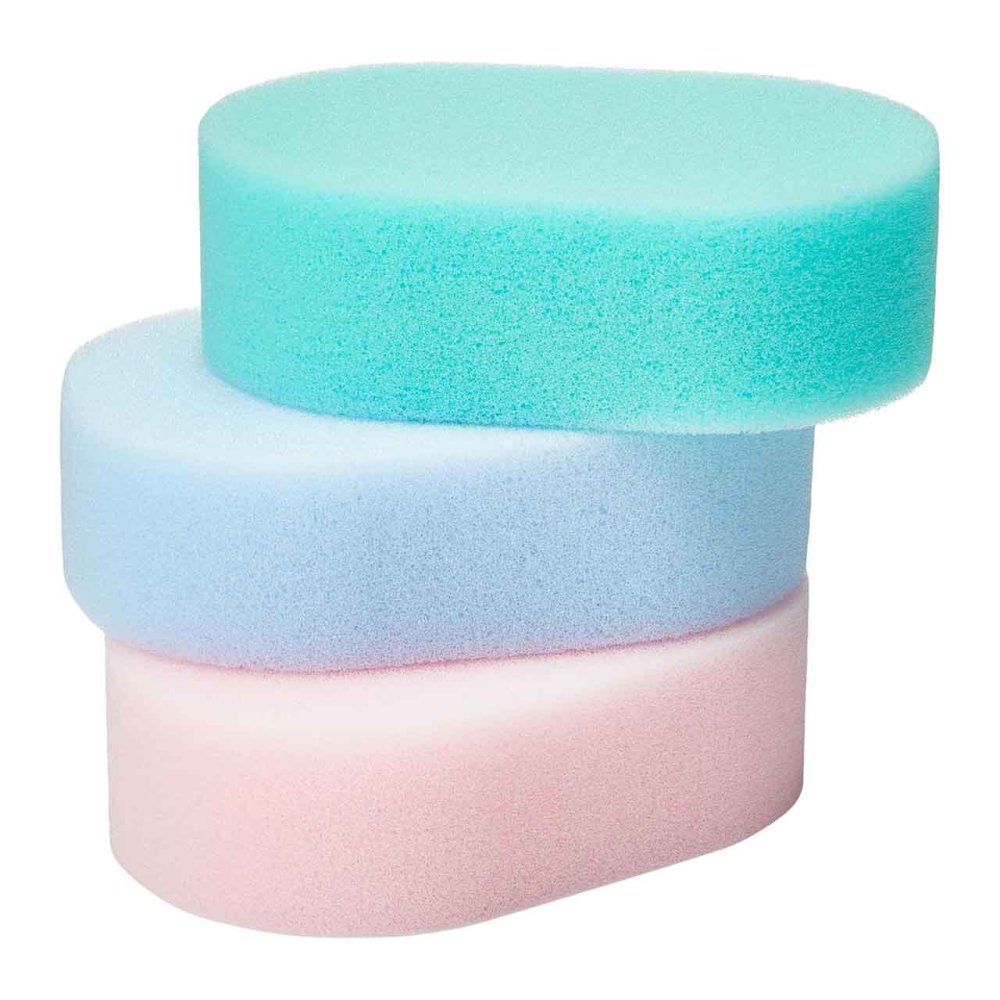 This pack includes three sponges in a mix of soothing blue, gentle pink, and refreshing teal colors, adding a touch of vibrancy to your daily routine.