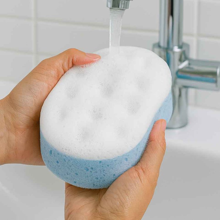 2. Wet the Sponge: Thoroughly wet the chosen side of the sponge with water.