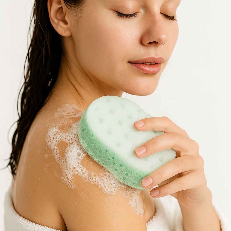 1. Choose Your Side: Select either the smooth or textured side of the Meridiana Massage Sponge based on your skincare needs.