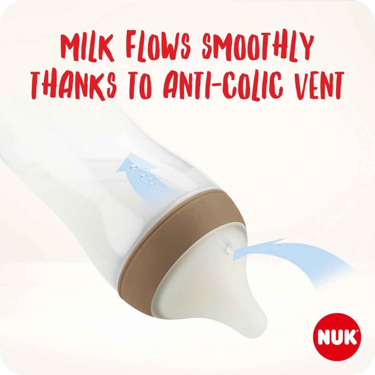 Designed to adapt perfectly to your baby’s needs, the NUK Perfect Match Baby Bottles Set combines innovative feeding technology with the beloved charm of Disney’s Mickey Mouse. The ultra-soft, skin-like teat gently moulds to your baby’s lips and palate, providing a familiar, soothing experience that 98% of babies accept.*