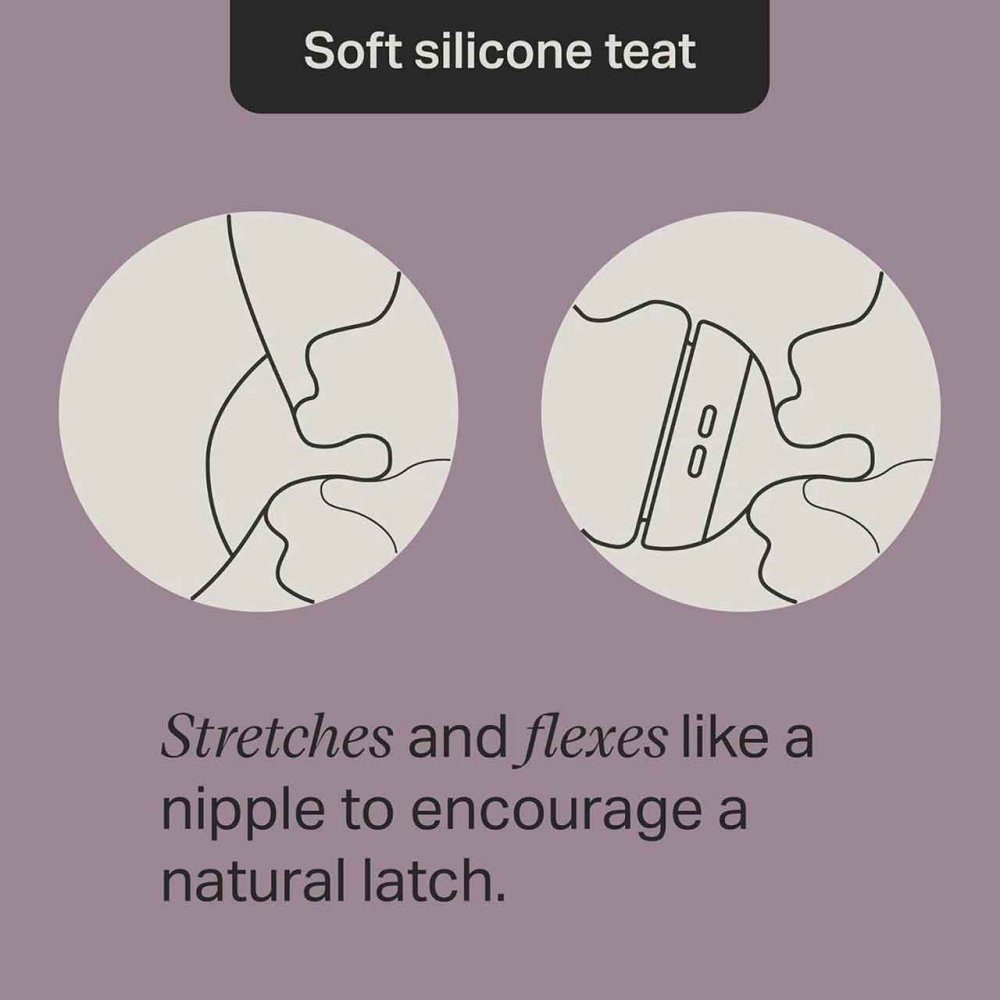 With soft, breast-like silicone teats that flex and stretch for natural-paced feeding, and easy 3-step microwave self-sterilisation, this set helps you feed with confidence and calm. Completely leakproof when assembled, even when shaken or turned upside down.