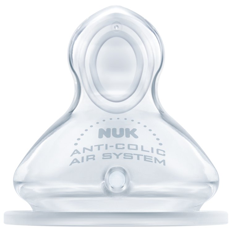 The improved NUK Anti-Colic Air System reduces infant colic by minimising the swallowing of air. The medium feed hole features several tiny openings that mimic a natural, smooth flow suitable for breast milk and formula.