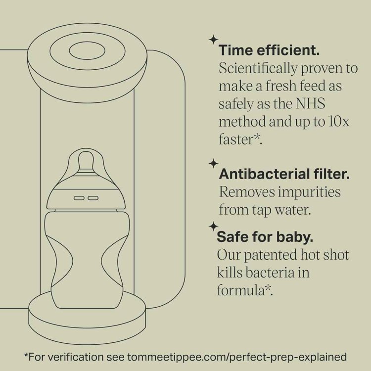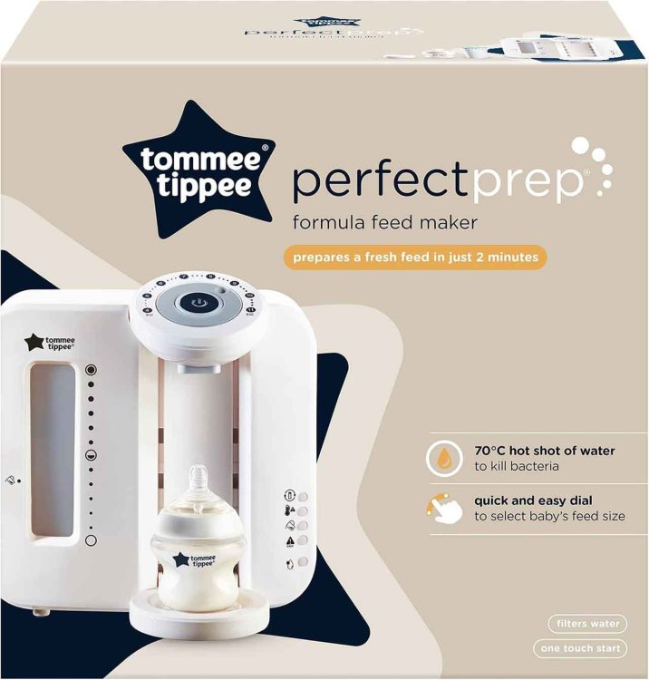 Make bottle feeding quicker and easier with the Perfect Prep Machine. Designed to prepare body temperature formula feeds in just 2 minutes, it delivers a quick, accurate, and hygienic way to feed your baby day or night. With a built-in antibacterial filter and 70°C hot shot, it ensures impurities are removed from both water and formula.