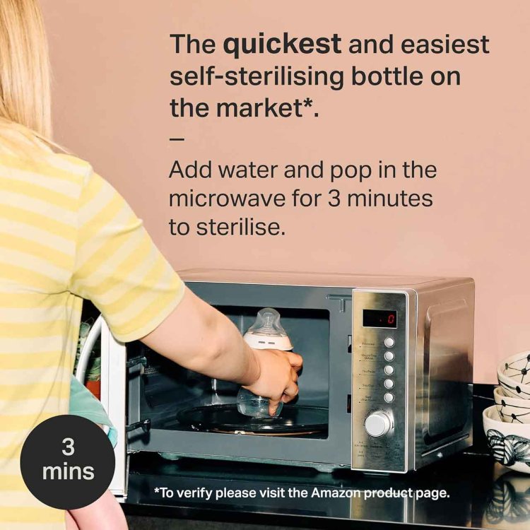 Built-in anti-colic valves are proven to reduce air intake, helping ease common issues like gas, colic, and reflux. The bottles are self-sterilising in just 3 minutes—no extra equipment required—perfect for busy days and night feeds.