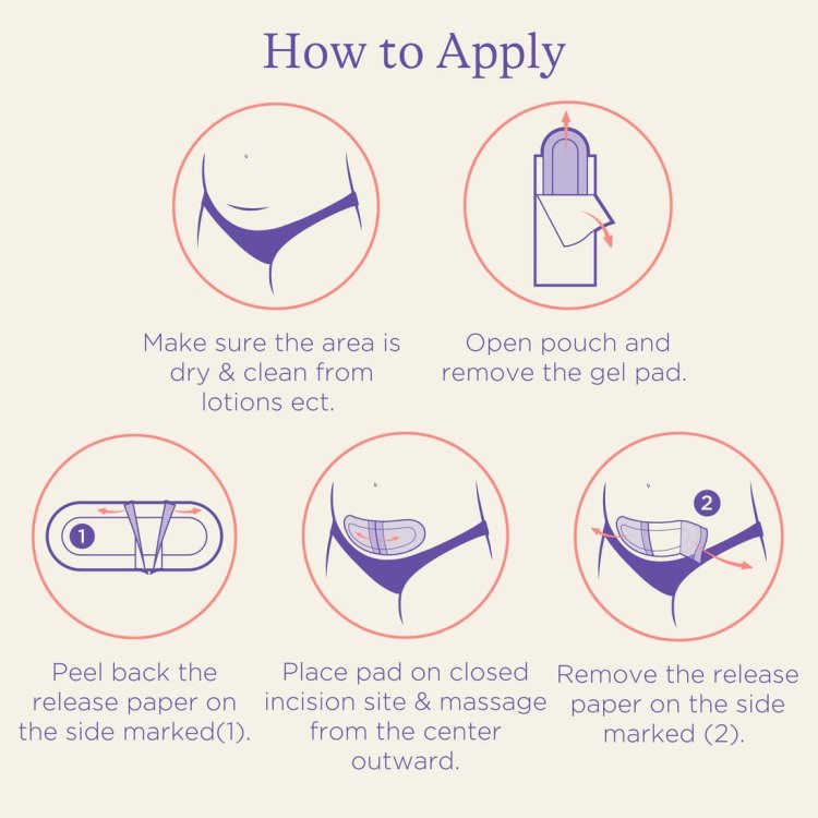 For use from 10 days post-surgery, when the incision wound has been assessed by your midwife to make sure it is clean, closed, and dry to avoid any infections. Ensure the area is clean and dry before applying the hydrogel pad. Open pouch and remove the gel pad then peel back the release paper on the side marked (1). Gently place the gel side of the pad directly over your closed incision site. Apply the pad by massaging the area using a smooth motion from the centre outwards before removing the release paper on the side marked (2). For an extra cooling effect, refrigerate unopened pads before use.