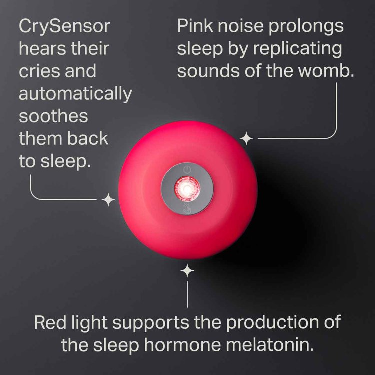 Featuring a pink noise machine that replicates womb sounds, the Dreammaker prolongs restful sleep and reduces disturbances. Its smart CrySensor technology detects your baby’s cries and automatically activates your preferred combination of light and sound to soothe them back to sleep—giving both baby and parents peaceful, uninterrupted nights. Adjustable brightness and simple controls make this sleep aid a calming nursery essential.