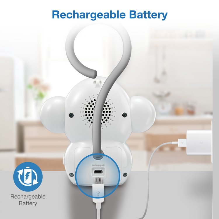 Keep baby calm even on the go with the VTech BC8211 Myla the monkey portable sound machine baby soother. This portable soother attaches almost anywhere and lets you choose from 5 gentle lullabies and 5 soothing sounds like white noise to relax your little one while on the road. The edible tail on this monkey-shaped noise machine hooks onto things like doorknobs, stroller handles and even car seats.