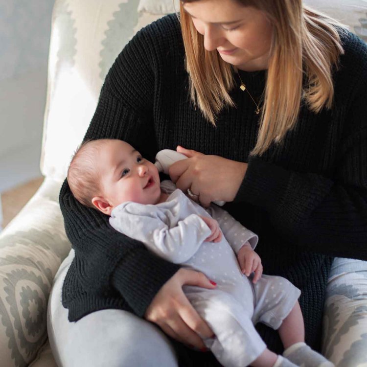 Straighten the ear canal by pulling the outer ear up and back to give a clear view of the eardrum. For children under one year, pull the ear straight back.