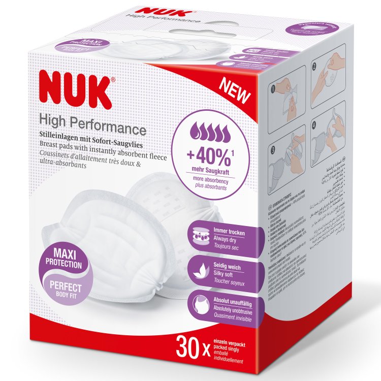 NUK High Performance Breast Pads are designed to keep you dry and comfortable throughout your breastfeeding journey. Featuring an instantly absorbent fleece core, these pads offer long-lasting moisture retention to keep skin dry and fresh. The super soft inner fabric combined with a breathable outer layer ensures gentle care for sensitive skin.