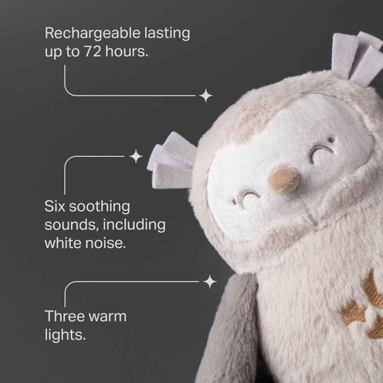 Its soft plush fabric is machine washable for easy care, and the USB rechargeable battery provides up to 72 hours of wire-free use. With adjustable volume and light settings, OllieOwl creates the perfect peaceful environment for better sleep all round.