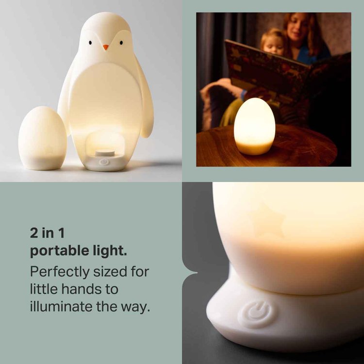 Tommee Tippee 2-in-1 Portable Penguin Nursery Night Light | Reassuring Portable Egg Light | Adjustable Brightness | USB-Powered