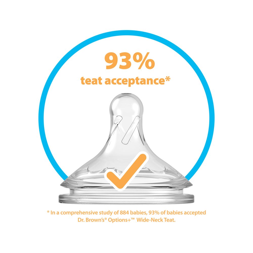 The enhanced design of the Dr Brown’s Options+ Anti-Colic Bottle is clinically proven to reduce windy colic due to Dr Brown’s unique 100% vacuum-free vent system. Dr Brown’s Options+ bottles offer an easy and comfortable way to feed your little-one, adapting to their needs as they grow. With the unique design, this bottle can be used with or without the removable internal vent system, transforming it into a teat-vented bottle for more convenience. Use Dr Brown’s Options+ bottles from birth – don’t wait until your baby develops colic! Contains 1 x 9oz/270ml Bottle with Level 1 Teat.