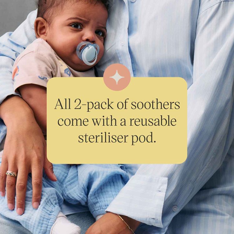 Designed with a specially shaped shield for a comfortable fit, these soothers also have air holes to keep your baby’s skin breathable. Each pack includes a reusable steriliser pod for simple, hygienic cleaning.