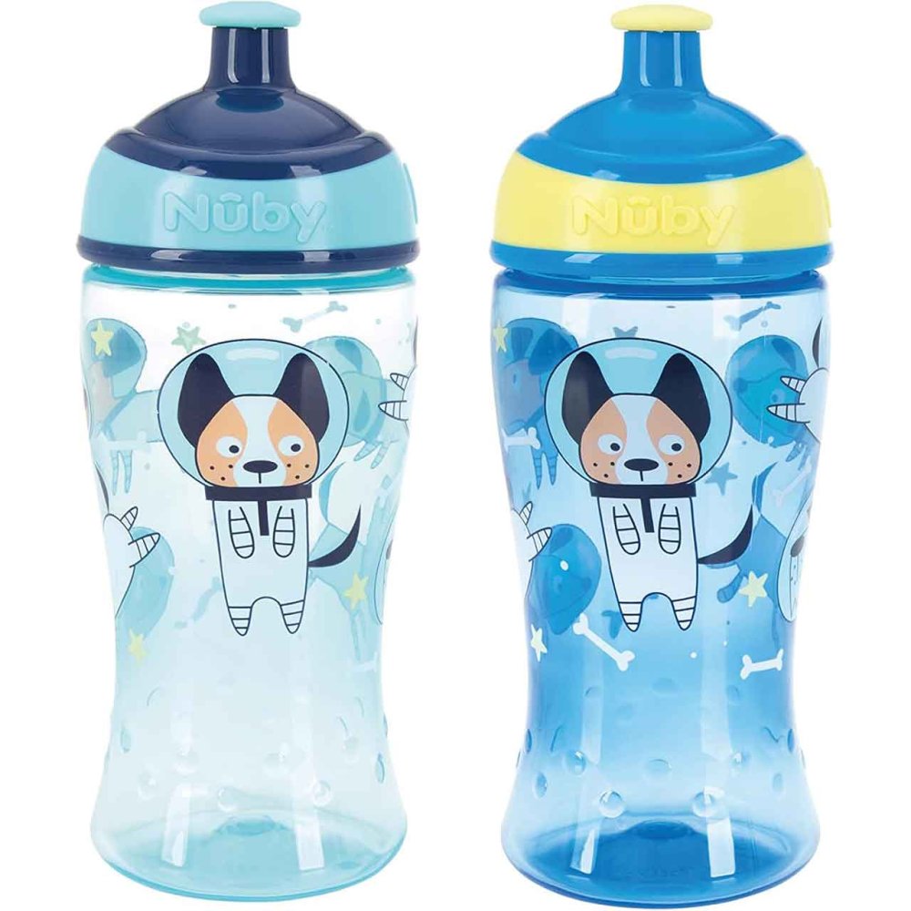 1 x Nuby Super Slurp Pop-Up Water Bottle (360ml, assorted colours and designs)