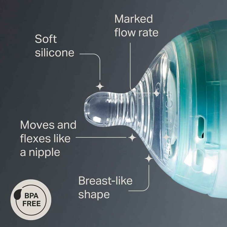 We offer different flow rates to keep up with your growing baby. Every baby is different but as a guide we suggest slow flow for 0+months, medium flow for 3+ months and fast flow for 6+ months. Advanced Anti-Colic teats are only compatible with Advanced Anti-Colic bottles.