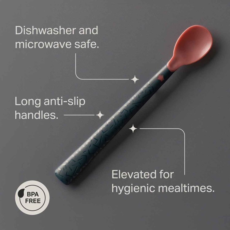 The long handles reduce mess when feeding from jars or pots, and the raised handle keeps the spoon and food away from surfaces for more hygienic mealtimes. Soft and gentle on gums, these spoons provide extra reassurance during weaning.