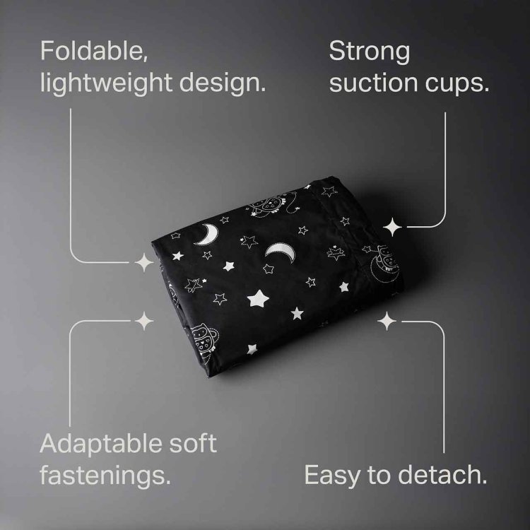 Create the perfect dark sleeping environment wherever you go with this lightweight and portable blackout blind. Designed to block out daylight effectively, it helps maintain your baby or toddler’s sleep routine no matter the season or location. The star and moon print adds a calming touch to any nursery or room.