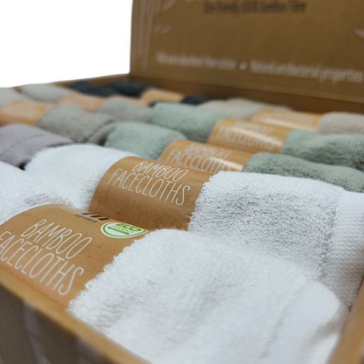 Branded Counter Display: Elevate your in-store aesthetic with our eye-catching counter display unit, making Meridiana's Bamboo Facecloths a must-have for your customers.