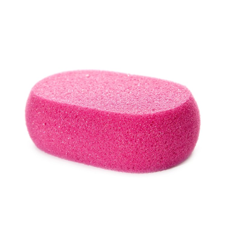 1. Begin by wetting the bath sponge under warm water. Allow it to absorb enough water to become soft and ready for use.