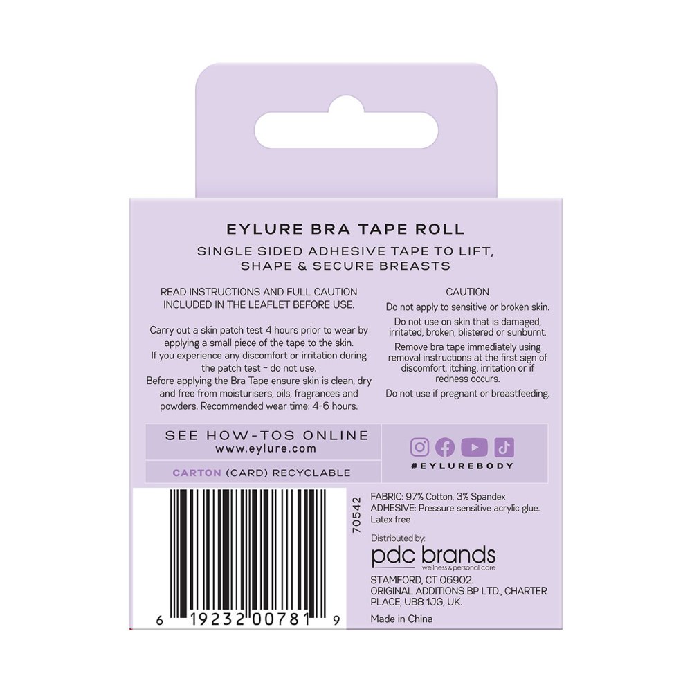 Eylure Bra Tape comes in 3 shades - Light, Medium & Dark to complement most skin tones. Eylure Bra Tape is a single sided adhesive tape to lift, shape and secure your breasts. With multiple ways to wear, depending on your clothing style, Eylure Bra Tape is easy to apply, comfortable to wear and is easily removed with baby oil.