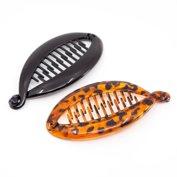 This classic banana hair clip features a wide comb grip, providing both fashion and functionality. Suitable for most hair types or hairstyles, including long, wavy, curly, or straight hair, this clip is versatile and convenient. Whether you're heading to work, a special event, or a casual outing, this clip effortlessly adds sophistication to your hairstyle. Create elegant up-dos with ease using this stylish and practical banana hair clip.