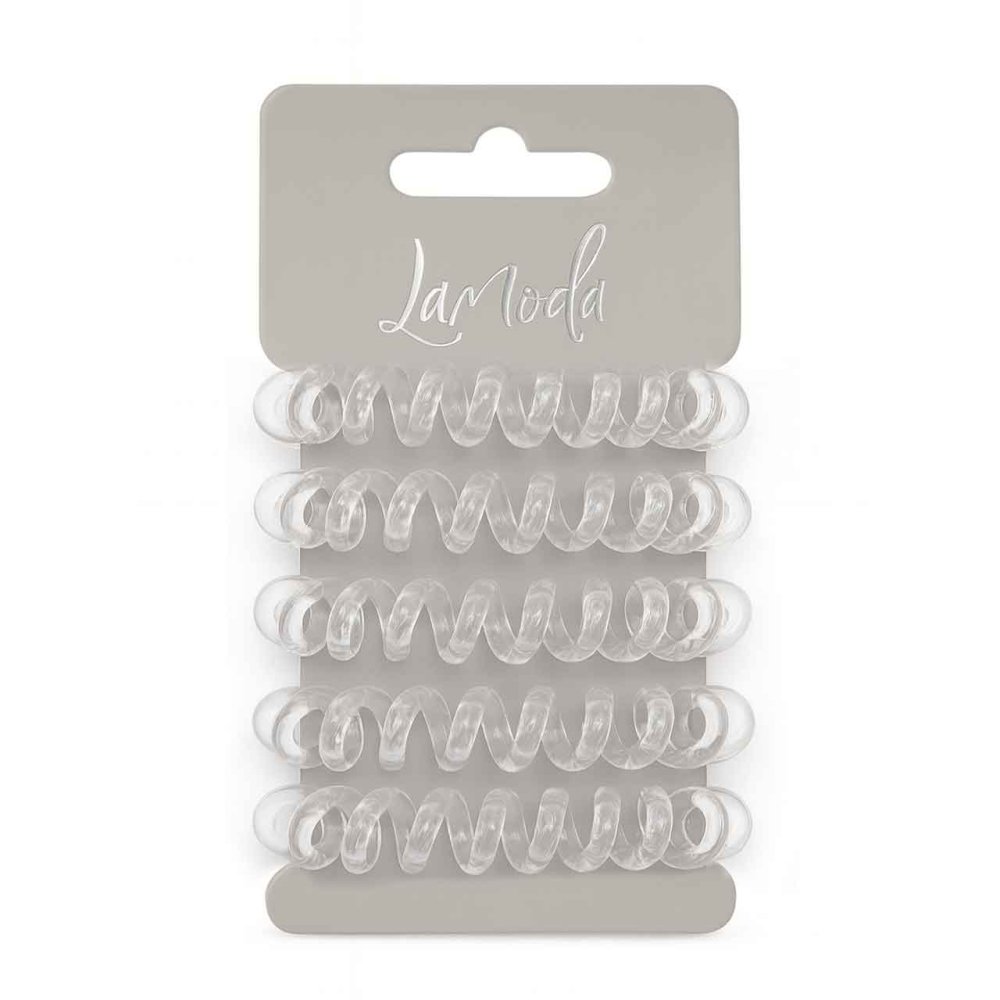 Achieve flawless ponytails every time with our 'No Kinks' Ponytailer Hair Bands in Clear. These innovative hair bands feature a spiral design, so when it's time to let your hair down, these bands leave no kinks behind, allowing you to transition seamlessly from an up-do to a sleek down-do in seconds.