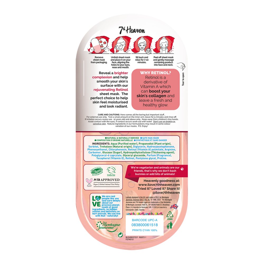 Achieve a brighter, more even complexion and refine your skin’s texture with this rejuvenating Retinol sheet mask. It’s the perfect solution to hydrate and enhance your skin’s natural radiance. Retinol, a Vitamin A derivative, boosts collagen production for a fresh, healthy glow.