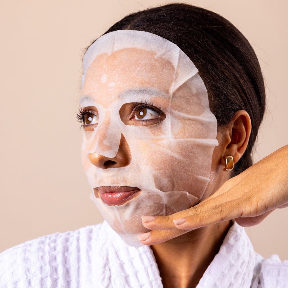 4. Peel off sheet mask and gently massage remaining product into face and neck.