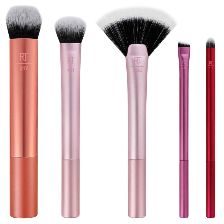 Set Includes the following brushes: (1) RT 217 that precisely apply liquid or cream foundation and contour makeup. (1) RT 421 that blend cream highlighter or blush. (1) RT 420 that softly glide powder contour makeup or highlighter. (1) RT 317 to apply and smudge liquid or cream eyeliner. (1) RT 425 to apply, blend cream lipsticks and liners.