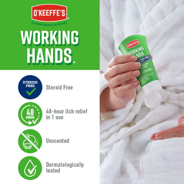 Product Description: O'Keeffe's Working Hands Eczema Relief is designed to soothe and repair skin affected by eczema. Its gentle yet powerful formula reduces itching, redness, and dryness, offering long-lasting comfort and hydration. Ideal for sensitive skin, this cream provides effective relief without irritation.