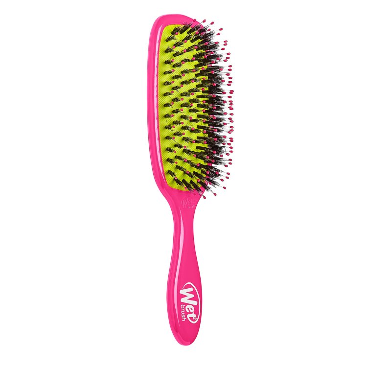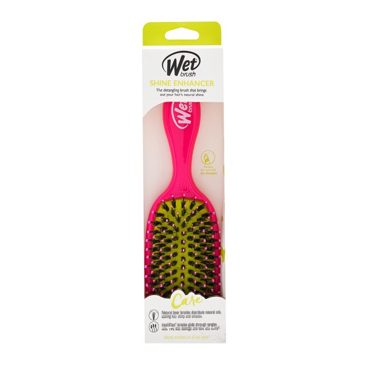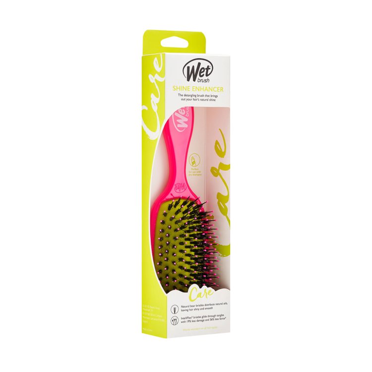 Achieve shiny, happy hair with the Wet Brush® Shine Enhancer in Pink. This brush combines ultra-soft IntelliFlex® bristles with natural boar bristles to gently detangle while distributing your hair’s natural oils from root to tip. The result is smooth, glossy strands with enhanced shine. Perfect for refreshing styles between wash days, it also works wonderfully with dry shampoo.